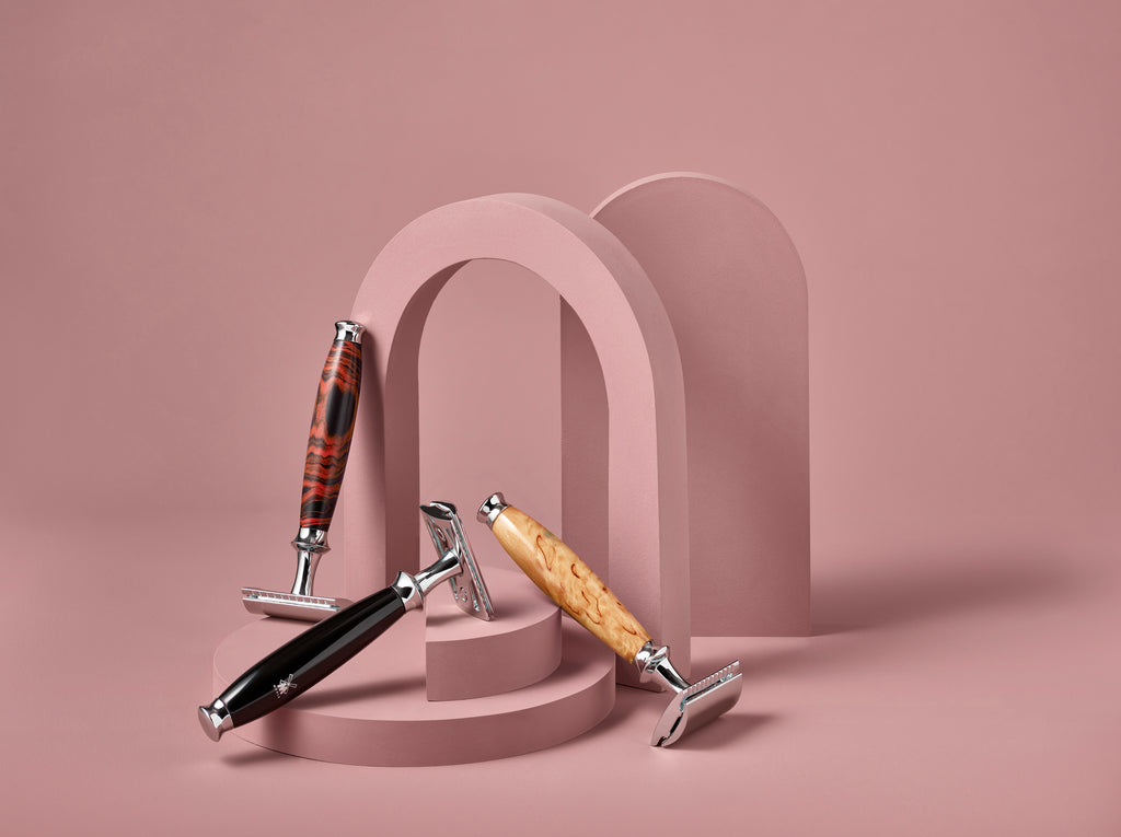 The supple material has hardly been used when it is already at operating temperature. So far, it has been appreciated above all by music lovers, for example as mouthpieces for saxophones and clarinets or as piano keys. Tobacco pipes and writing utensils also like to adorn themselves with the elegant material and now also shaving utensils from MÜHLE, such as the PURIST series. The gently rounded silhouette harmoniously picks up the curve of the grain, while the chrome-plated base and the wider collar provide a fitting counterpoint.
