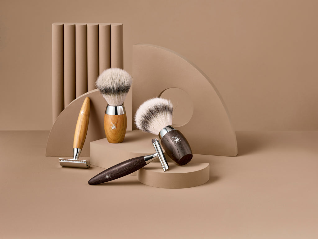 This product by MÜHLE is the perfect companion for everyone who have a touch of the cosmopolitan about them. The clear design language of the KOSMO line is accentuated by a striking chrome neck. Materials full of character such as millennia-old bog oak and expressive olive wood lend this modern design series that special something. Brushes, shavers and safety razors are also available in classic colours for cosmopolitans with a penchant for black.