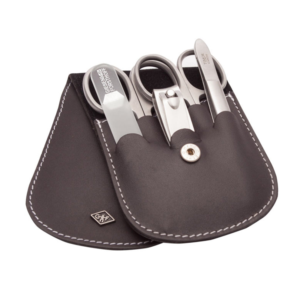 Giesen & Forsthoff Timor® 5-piece Manicure Set with glass nail file, in Brown Cowhide Leather Pouch