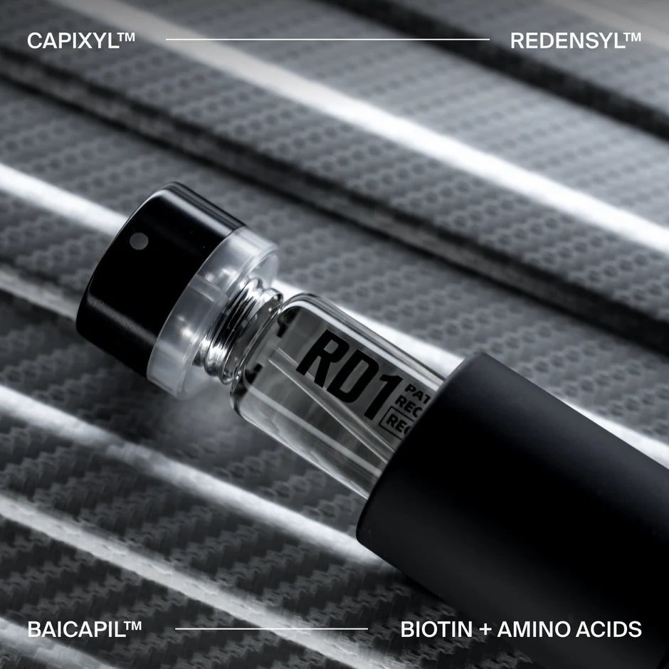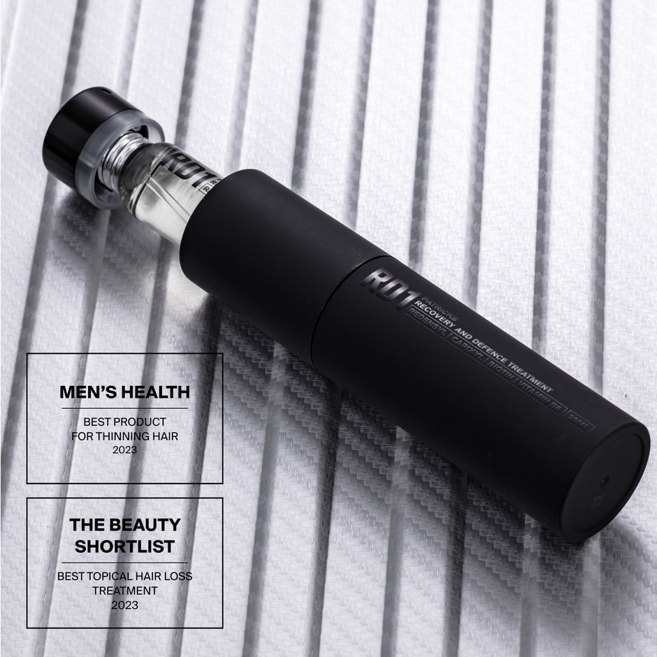 Spray away hair loss. An award-winning Anti-Hair Loss Spray scientifically formulated to block the formation of DHT, improve hair anchoring and add nutrition to the hair and scalp – significantly reducing hair loss and maximising hair growth. RD1 has the added benefit of adding texture, working as a styler in its own right or as a pre-styler for one of our styling products. Packed with advanced actives Redensyl, Capixyl, Capi-Secretys, Caffeine, Panthenol, Tego Cosmo, Swertia Herb Extract and Orich-37m.