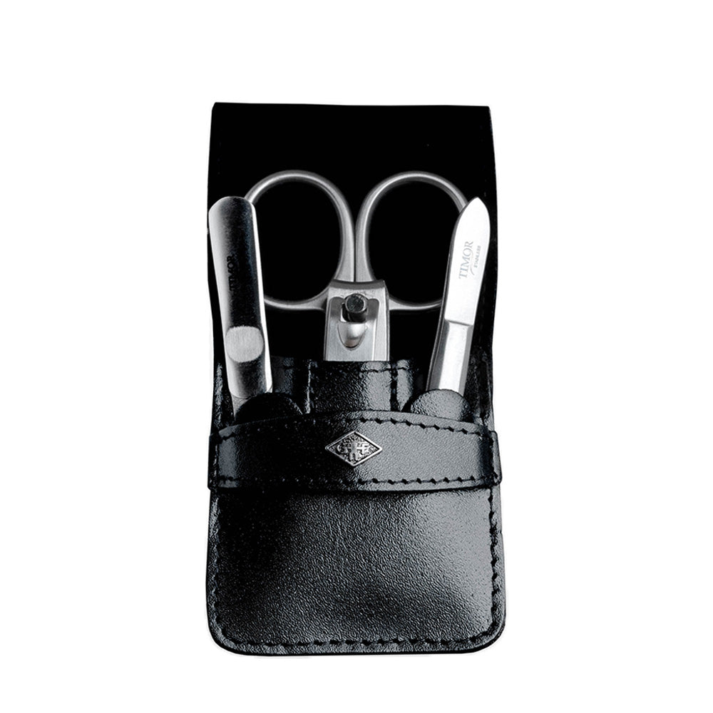 This elegant four-piece manicure set combines timeless design with practical function. From daily maintenance to weekend trips, the set delivers dependable precision and organised storage in a classic black leather pouch.