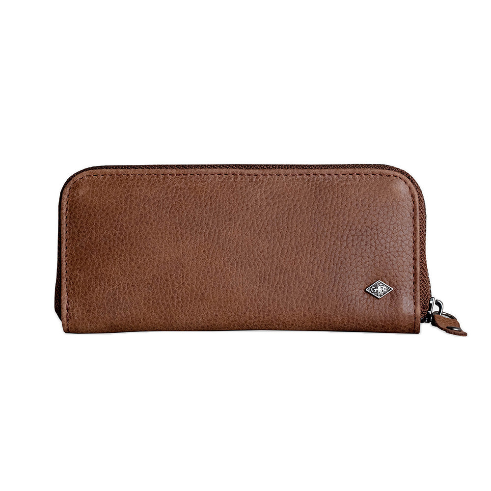 Case Material: Brown nubuck leather (in- and outside); metal zipper closure; soft-touch finish; durable and protective